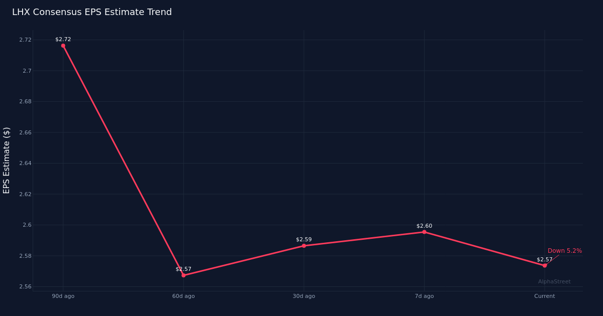 Downward Estimate Trajectory Signals Caution. Analyst sentiment has deteriorated in recent months, with the EPS consensus declining 0.8% over the past 30 days from $2.59 and falling 5.5% over the past 90 days from $2.72. This pattern of negative revisions suggests analysts have grown more conservative as the quarter progressed, potentially reflecting concerns about execution, program timing, or broader defense spending dynamics. The widening gap between current estimates and where they stood three months ago indicates material reassessment of near-term prospects rather than minor fine-tuning.
