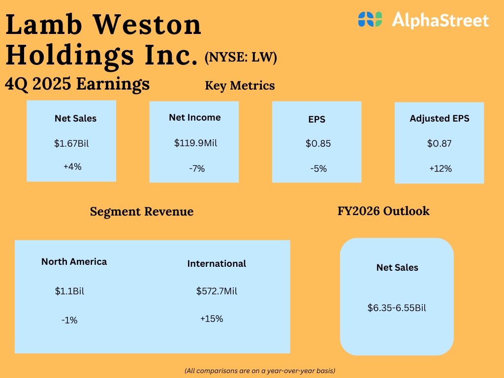 Analysts are projecting revenue of $1.62 billion for Lamb Weston in the first quarter of 2026, which indicates a decline of over 2% from the same period a year ago. In the fourth quarter of 2025, net sales increased 4% year-over-year to $1.67 billion.