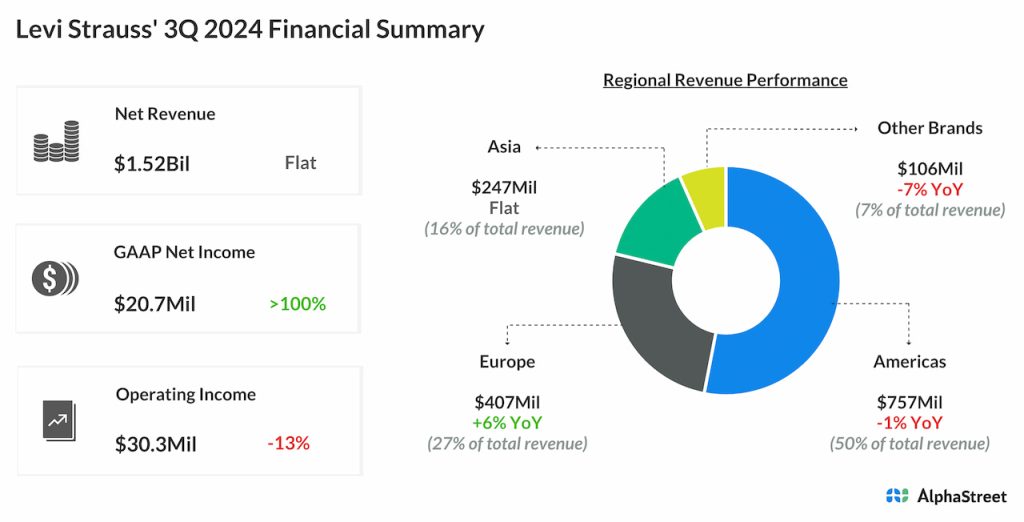 “We are making progress against our strategic priorities, including double-digit growth in our direct-to-consumer business, continued positive performance in the U.S., and Europe inflecting to growth,” said Michelle Gass, CEO of Levi Strauss.