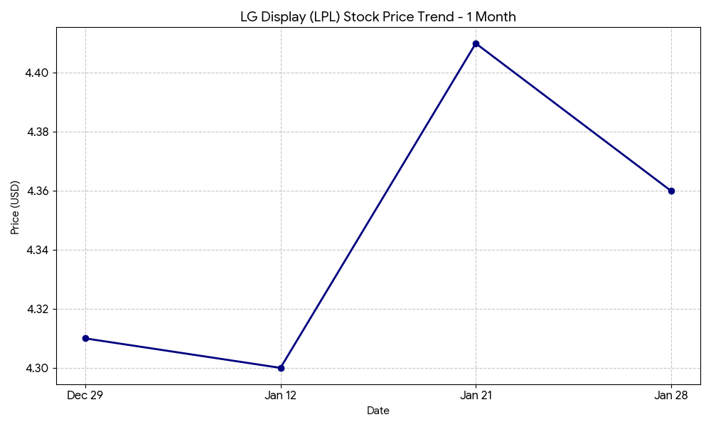 LG Display Co., Ltd. (NYSE: LPL), a manufacturer of thin-film transistor and organic light-emitting diode (OLED) display products, saw its shares decline on Wednesday. The company’s American Depositary Shares (ADS) closed at $4.36, representing an intraday decrease of 1.13%. This move occurred as the company disclosed its unaudited financial results for the final quarter of 2025 and the full fiscal year.