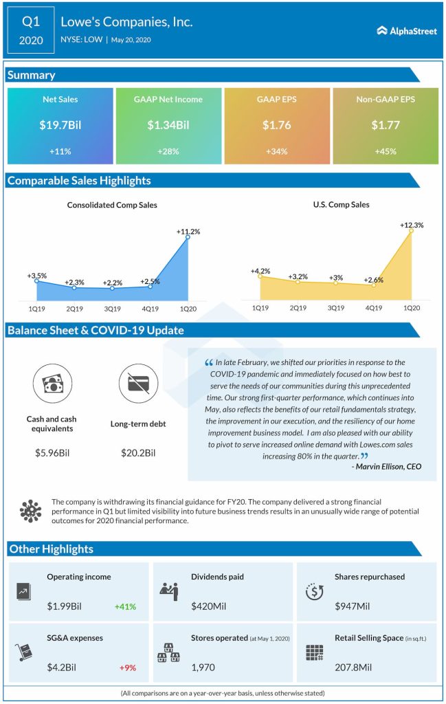 “Lowe’s Companies, Inc. (NYSE: LOW) reported a 28% jump in earnings for the first quarter of 2020 helped by higher revenue. The results reflected the benefits of its retail fundamentals strategy, the improvement in execution, and the resiliency of the home improvement business model. Given the uncertain economic outlook, the company raised $4 billion in […]