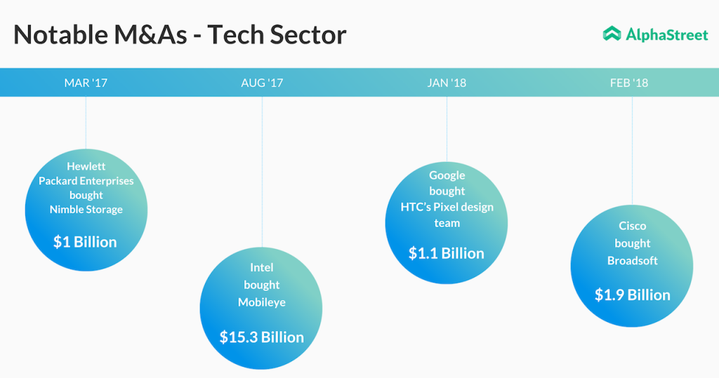 Facebook and Microsoft are also doing their bit in the M&A space, the latter having made a good bet on LinkedIn two years ago. Things seem to be running smoothly in the Microsoft-LinkedIn household for now, and both parties seem optimistic about a “happily ever after.” Good for them.