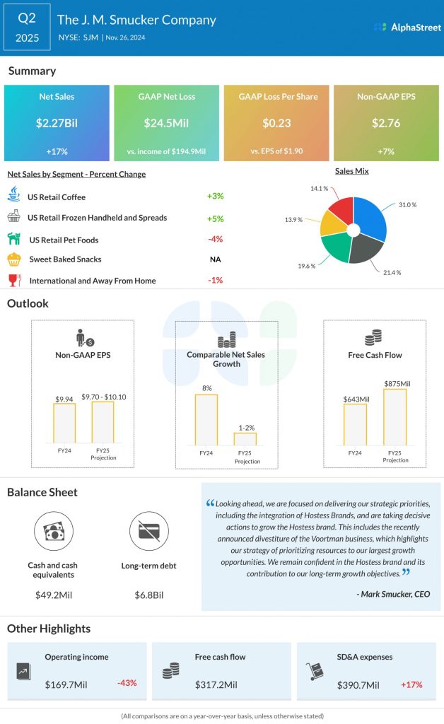SJM continues to focus its resources on the brands it believes have the highest growth potential, namely Uncrustables, Meow Mix, Milk-Bone, and Café Bustelo. The Uncrustables brand grew net sales by 16% at the total company level. The new facility at Alabama is expected to help the brand cross $1 billion in net sales. SJM now expects net sales for this brand to be over $900 million in fiscal year 2025. The Milk-Bone brand gained from double-digit sales growth in soft and chewy snacks while Meow Mix continues to maintain its leading position. Café Bustelo grew sales by 20% in Q2.