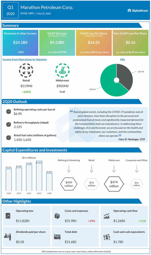 Marathon Petroleum Corp. (NYSE: MPC) reported a wider net loss for the first quarter of 2020, hurt by a sharp decline in revenues.
