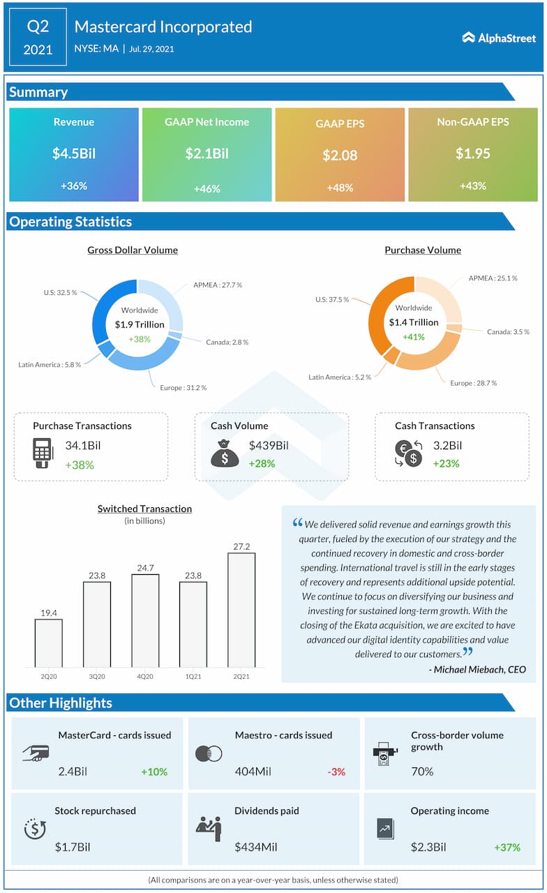 Mastercard Incorporated (NYSE: MA) reported second quarter 2021 earnings results today.