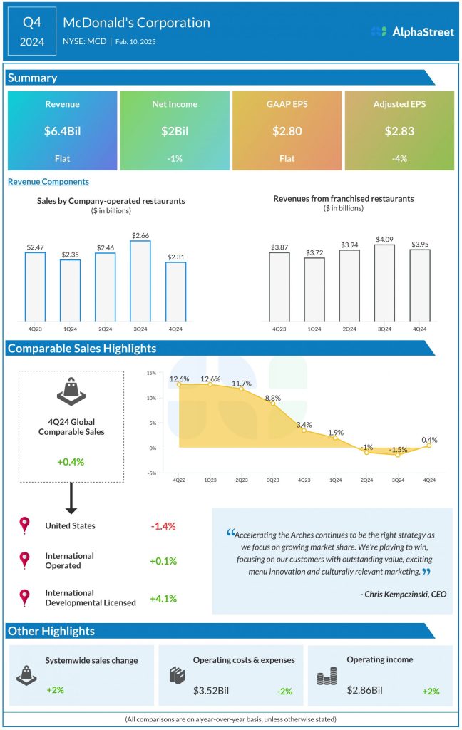 McDonald’s Corporation (NYSE: MCD) reported its fourth quarter 2024 earnings results today.