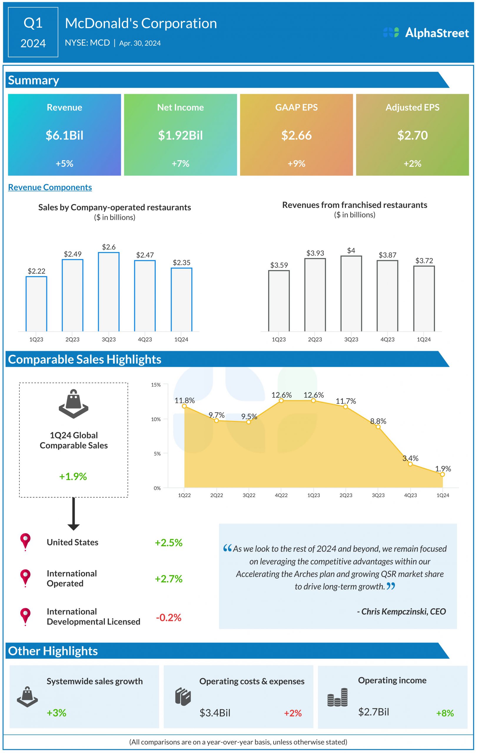 Global comparable sales increased 1.9%. System-wide sales increased 3%.