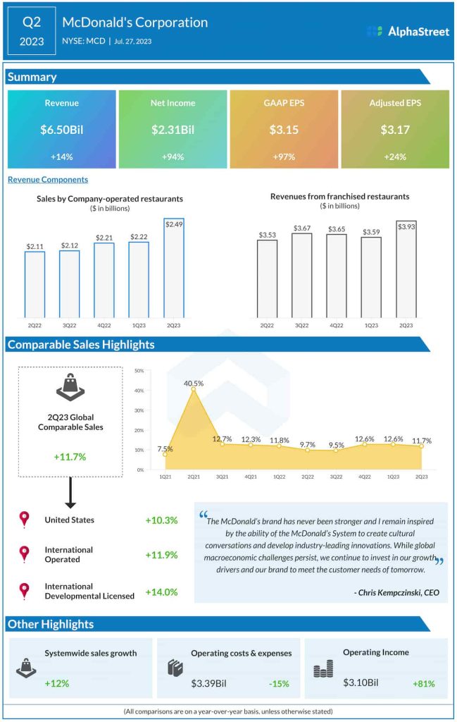 “The McDonald’s brand has never been stronger and I remain inspired by the ability of the McDonald’s System to create cultural conversations and develop industry-leading innovations. While global macroeconomic challenges persist, we continue to invest in our growth drivers and our brand to meet the customer needs of tomorrow,” said McDonald’s chief executive officer Chris Kempczinski.