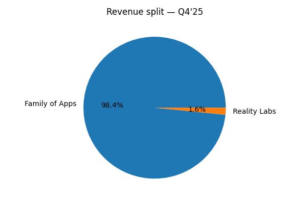 Shares moved on the quarter’s results. Revenue and net income increased year‑over‑year. The Family of Apps delivered the majority of revenue. Reality Labs remained a loss‑making division. Capital expenditure levels were elevated for the period.