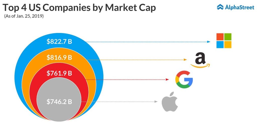 The Redmond-based software giant became the largest market cap company in the US by beating Apple (AAPL) on November 30, 2018. Microsoft’s market cap stood at $851 billion, while Apple lagged behind at $847 million.