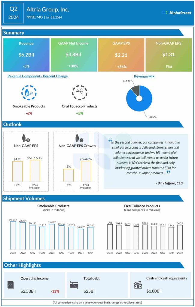 “Altria’s momentum continues to build as we pursue our Vision to responsibly lead the transition of adult smokers to a smoke-free future,” said Billy Gifford, Altria’s CEO.
