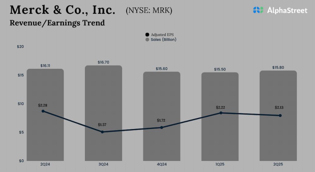 The company reported adjusted earnings of $2.13 per share for the second quarter, compared to $2.28 per share in Q2 2024. Reported net income was $4.43 billion or $1.76 per share in the June quarter, compared to $5.46 billion or $2.14 per share in the same period of last year.