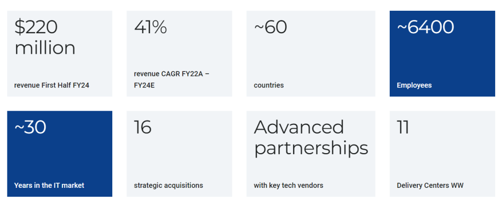 Over the past two years, we have witnessed very strong business growth, including geographic expansion with Noventiq opening operations in new markets including Singapore, Indonesia, Bolivia, Mexico, Dubai, Oman, and Saudi Arabia; as well as capabilities and talent expansion through the nine acquisitions we have made since January 2022. This strong growth continued in the first half of FY24, where we reported revenue of $220 million, up 41% year-over-year in constant currency. This growth was especially pronounced in the APAC and EMEA regions, where revenues grew 96% and 45%, respectively. Our goal is to continue on this path, and based on our outlook for FY24 to 31 March 2024, we expect to double the size of our revenue since the 1st of April 2022.