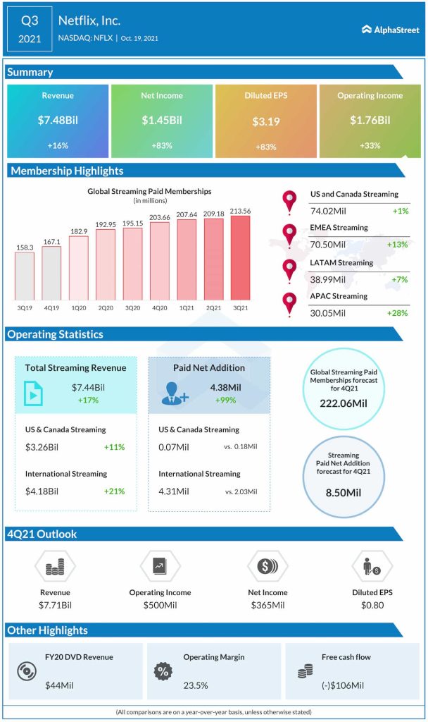Read management/analysts’ comments on Netflix’s Q3 2021 earnings