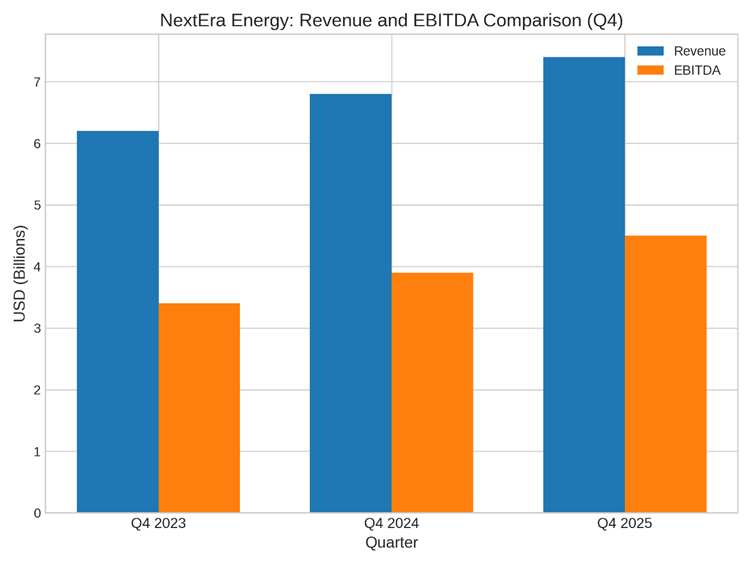 For the fourth quarter ended Dec. 31, 2025, NextEra Energy reported the following consolidated results from its official earnings release: