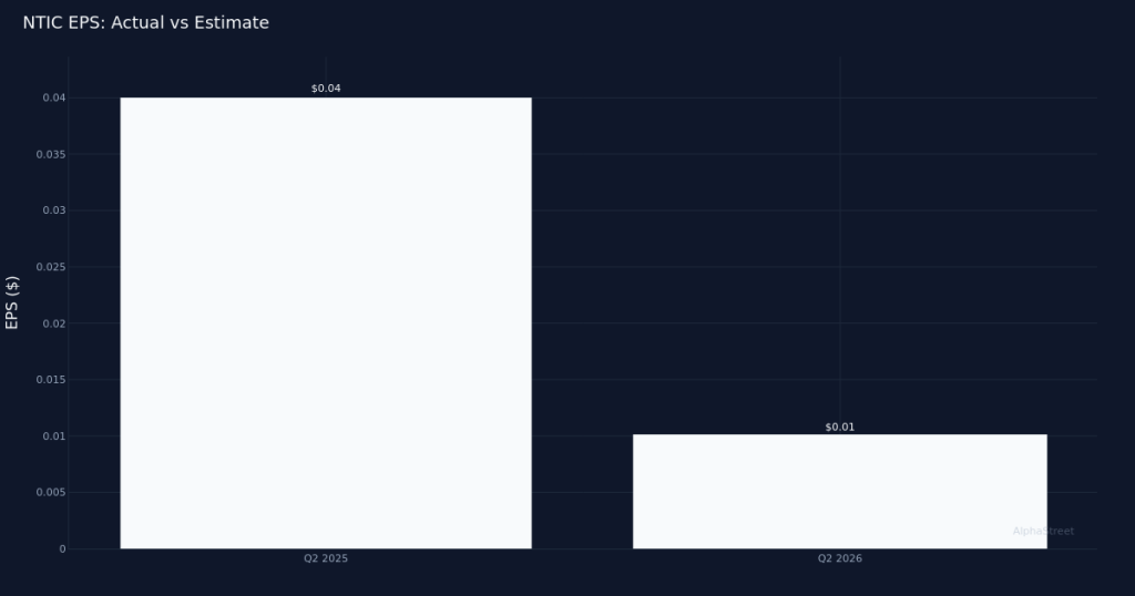 NTIC|EPS $0.01|Rev $22.0M|Net Loss $35,323Northern Technologies International Corporation (NTIC) reported Q2 2026 Non-GAAP adjusted earnings of $0.01 per share. The company generated $22.0M in revenue for the quarter. Revenue of $22.0M was up 15.3% year-over-year.