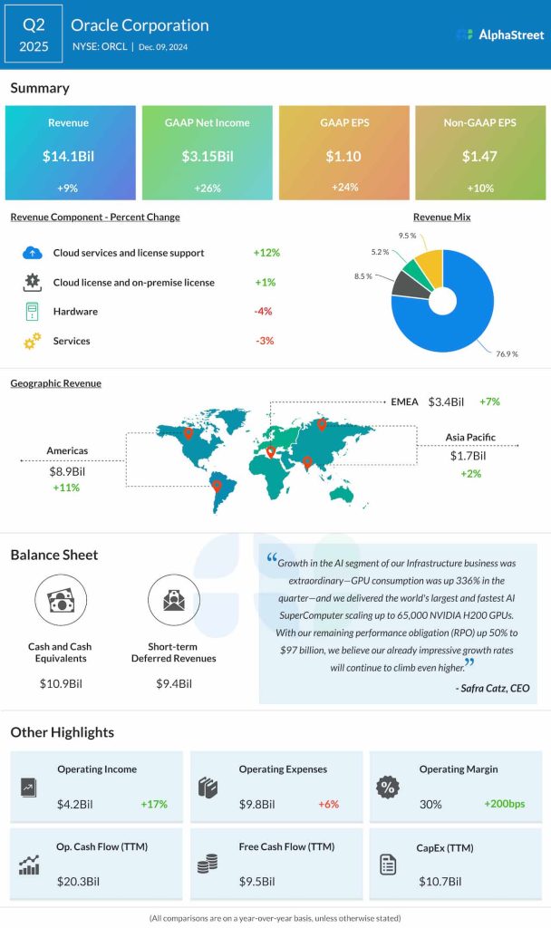 November-quarter revenues increased to $14.1 billion from $12.94 billion in the same period last year. Excluding special items, earnings were $1.47 per share in the second quarter, compared to $1.34 per share in the prior year.