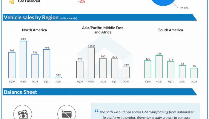 General Motors Co. (NYSE: GM) on Wednesday reported lower revenues and earnings for the third quarter of 2021. However, the results beat