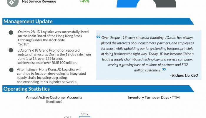 JD.com Inc. (NASDAQ: JD) reported second-quarter 2021 earnings results today. Net revenues increased 26% year-over-year to RMB253.8 billion, or $39.3 billion. Net