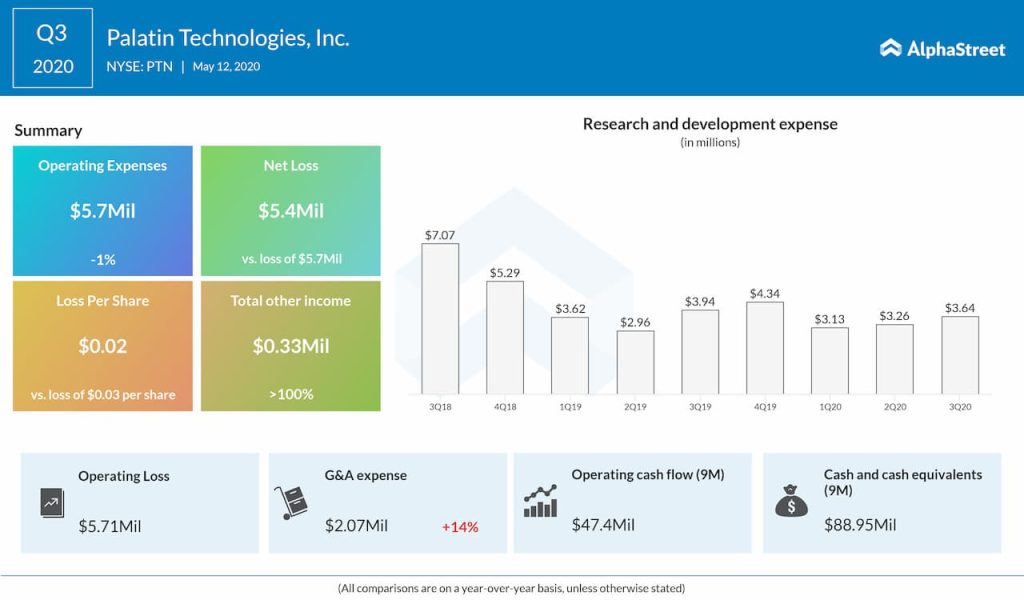 Palatin reported a loss of $5.4 million or $0.02 per share for the quarter ended March 31, 2020, compared to a net loss of $5.7 million or $0.03 per share for the same period in 2019. As already stated, the company didn’t record any revenue in the third quarter. With cash and cash equivalents of $88.9 million as of March 31, 2020, the Cranbury, New Jersey-based firm believes that existing capital resources will be adequate to fund its planned operations through at least March 31, 2022.