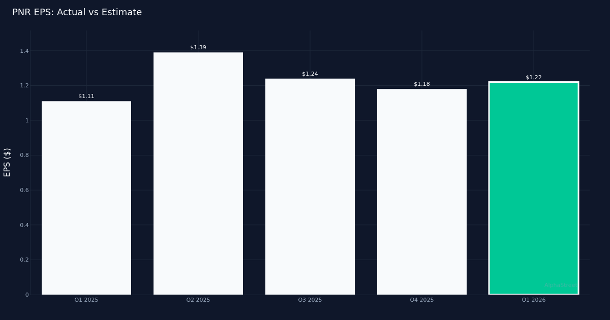 Pentair plc reported first-quarter adjusted earnings of $1.22 per share, topping the $1.18 analyst forecast by 3.4%, as the water solutions provider navigated modest demand growth across its global footprint. Revenue totaled $1.04B for the quarter, up 3.0% from the $1.01B recorded in Q1 2025, while adjusted bottom-line profit came in at $199.0M. The company’s operations span the United States, Western Europe, China, Latin America, the Middle East, Southeast Asia, Australia, and Canada.