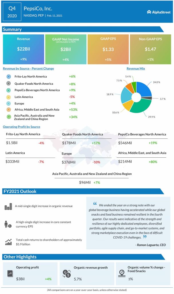 Net income attributable to PepsiCo was $1.8 billion, or $1.33 per share, compared to $1.7 billion, or $1.26 per share, last year. Core EPS amounted to $1.47 per share.