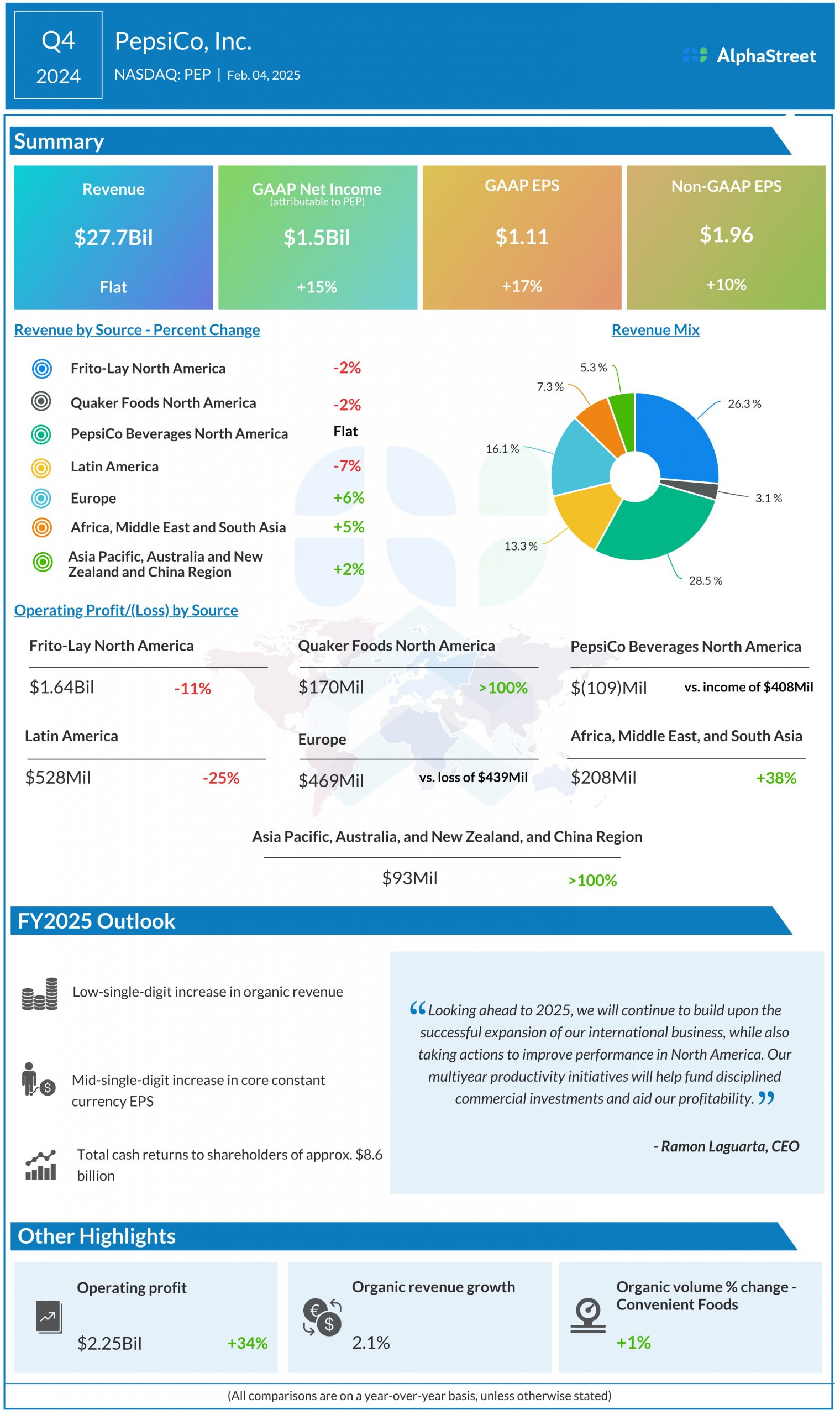 PepsiCo, Inc. (NASDAQ: PEP) reported its fourth quarter 2024 earnings results today.