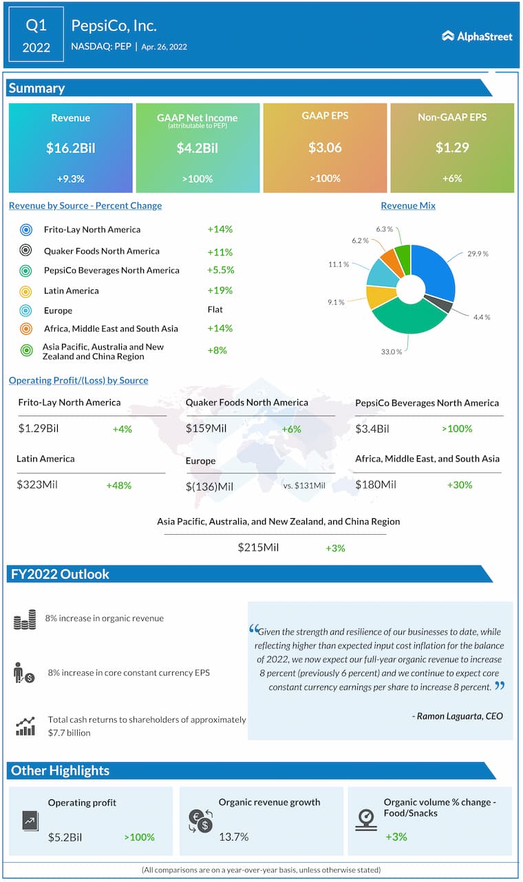 PepsiCo, Inc. (NASDAQ: PEP) reported first quarter 2022 earnings results today.