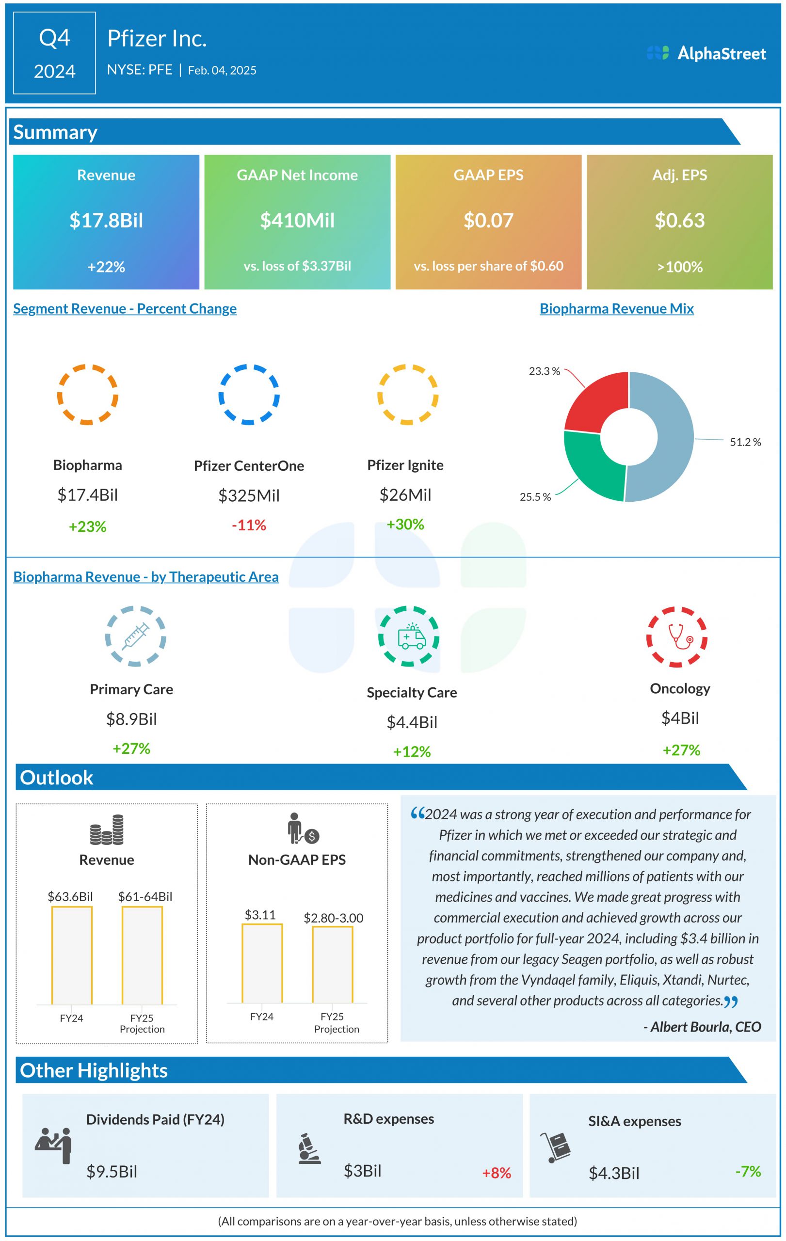 Pfizer Inc. (NYSE: PFE) reported its fourth quarter 2024 earnings results today.
