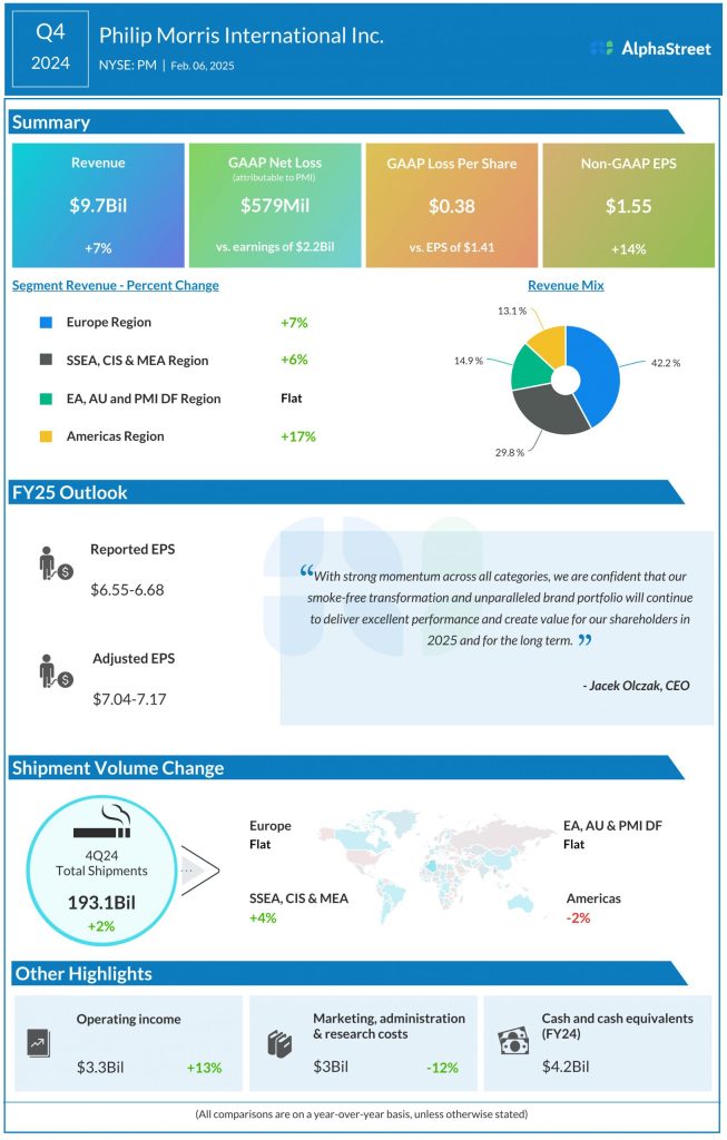 Net loss attributable to PMI was $579 million compared to earnings of $2.2 billion last year.