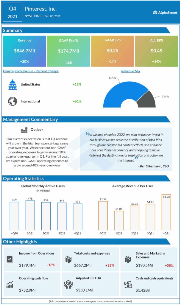 Click here to read the full transcript of Pinterest’s Q4 2021 earnings conference call