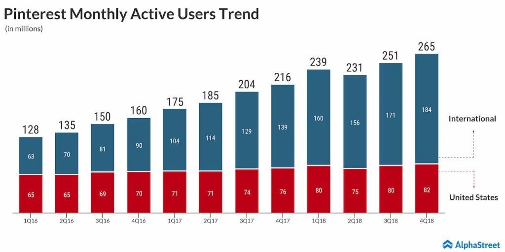 User growth trends, which are reflected in the number of MAUs, will be the key factor that will affect Pinterest’s revenue and financial results for the recently ended quarter. Pinterest generates revenue by selling advertising for marketers and companies that gain visibility for their brands. The company expects monthly active users to grow to 291 million as of March 31, 2019 and ARPU to grow to between $0.72 and $0.73 from $0.58 in the prior-year quarter.