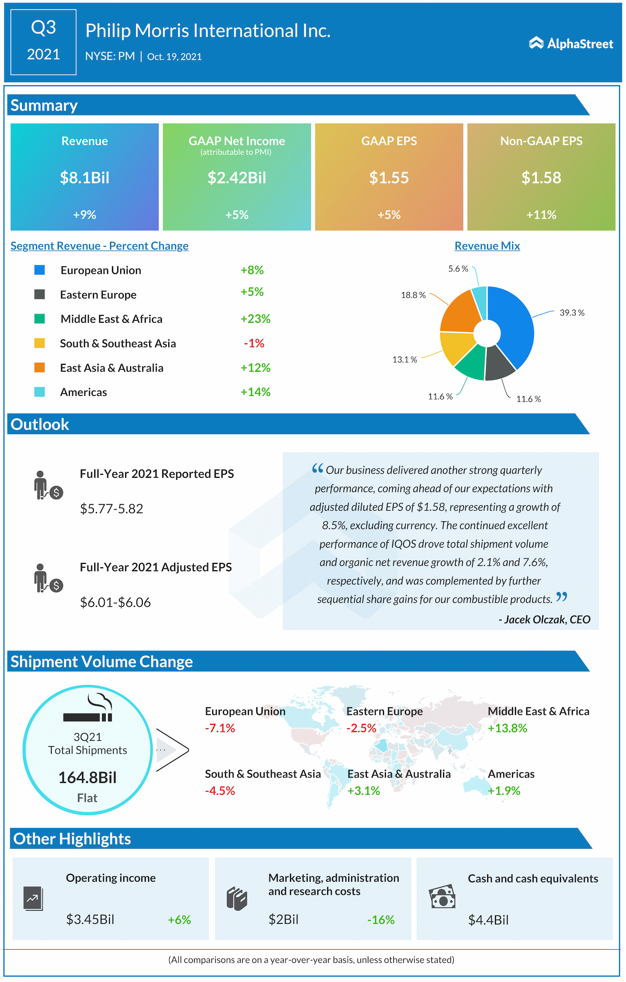 Philip Morris International Inc. (NYSE: PM) reported Third-quarter 2021 earnings results today.