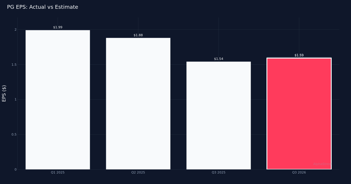 The Procter & Gamble Company reported third-quarter results that fell just short of Wall Street expectations, with core earnings per share of $1.59 missing the $1.60 consensus by 0.6%. The consumer products giant generated $21.23B in revenue for the quarter, marking a 7.0% increase from $19.78B in Q3 2025, while net income reached $3.93B.