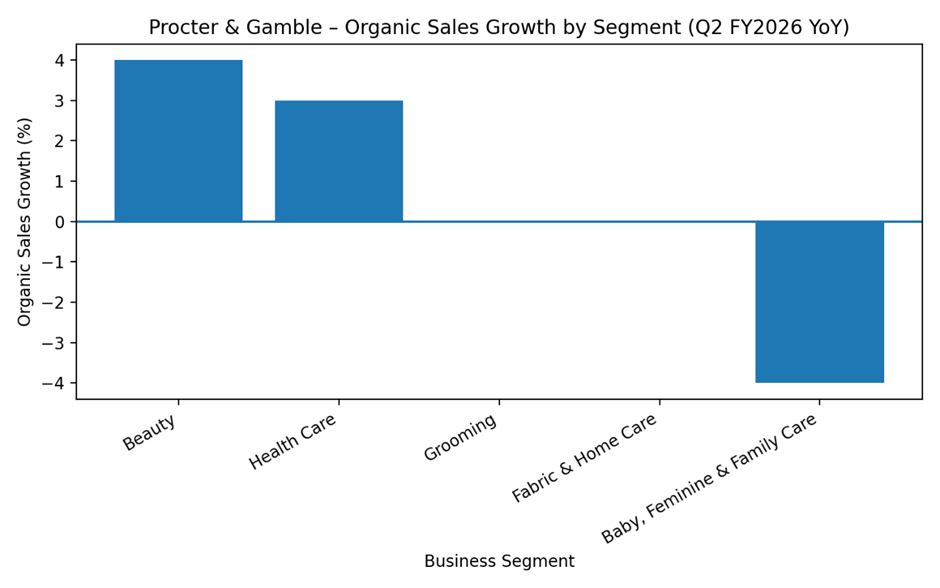 Institutional research noted that Procter & Gamble’s revenue slightly missed consensus expectations, reflecting soft consumer demand in staples categories, while earnings measures modestly exceeded forecasts. Analysts highlighted volume declines and tariff-related cost pressures as factors influencing near-term results.
