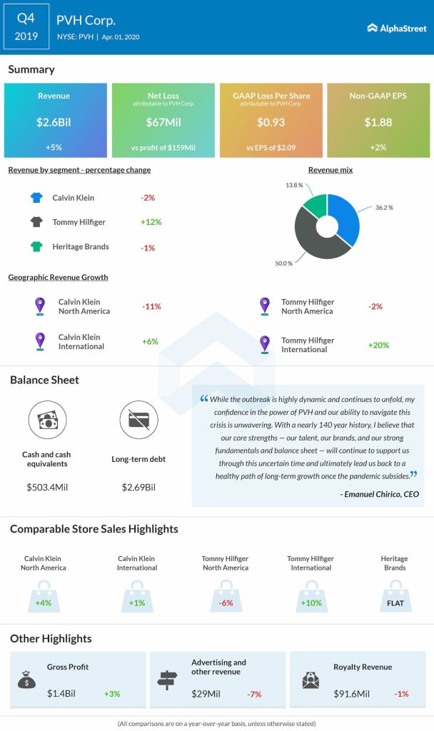 — Given the dynamic nature of the circumstances surrounding the pandemic, the company’s results could be impacted significantly in ways it is not able to predict. Therefore, PVH has not provided guidance for the first quarter and full-year 2020.