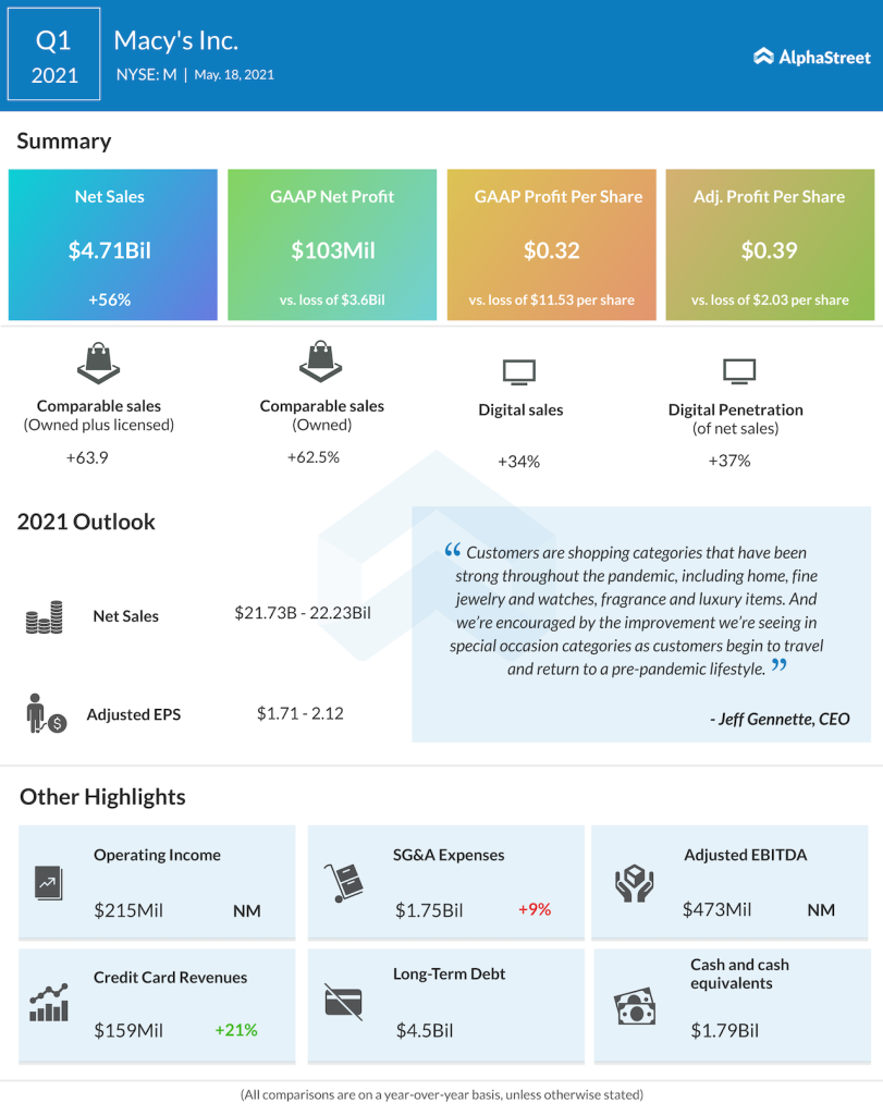 Digital channels maintained good growth even as stores reopened and shopping trends began to normalize. Macy’s (NYSE: M) said 47% of its new customers made their initial transaction through digital during the first quarter of 2021, which was up 74% compared to the same period in 2019.