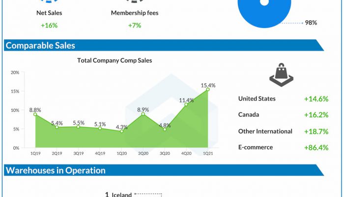 Costco Wholesale Corporation (NASDAQ: COST) reported first quarter 2021 earnings results today. Net sales increased 16.9% to $42.35 billion compared to the