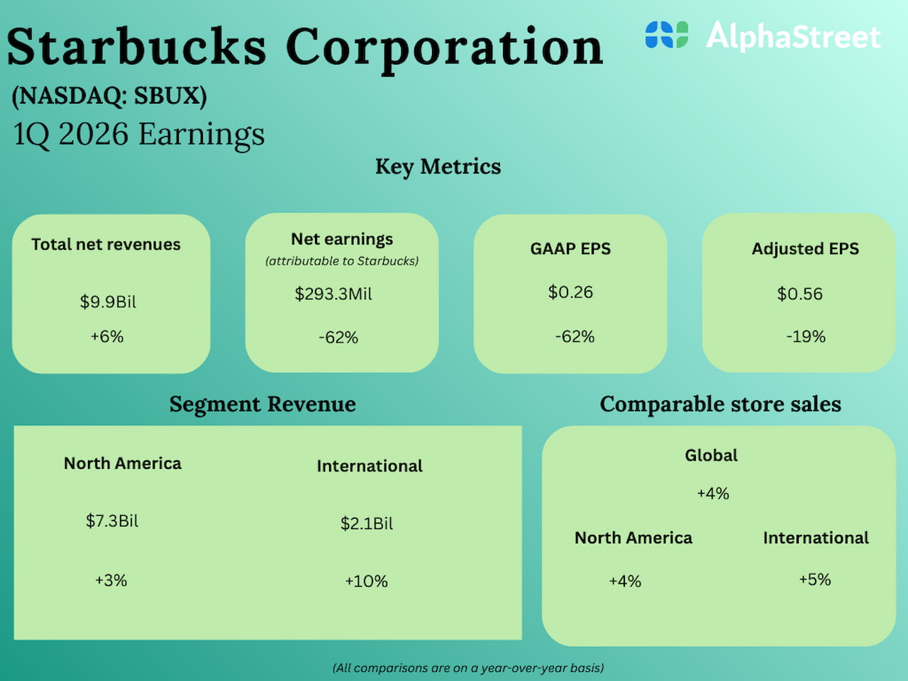 “Our Q1 results demonstrate our ‘Back to Starbucks’ strategy is working, and we believe we’re ahead of schedule. It’s great to see the sales momentum driven by more customers choosing Starbucks more often, and this is just the beginning,” said Brian Niccol, chief executive officer of Starbucks.