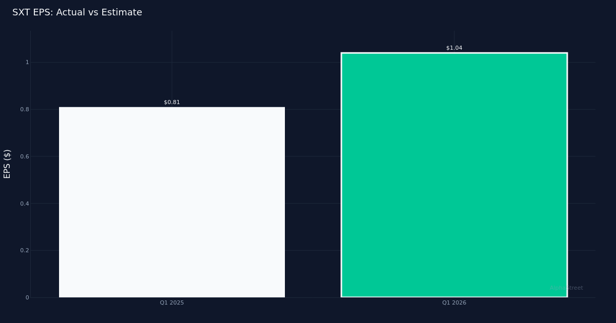 Sensient Technologies Corporation crushed first-quarter expectations, posting adjusted diluted earnings of $1.04 per share that sailed past the $0.84 consensus from 3 analysts by 23.8%. The Milwaukee-based specialty ingredients manufacturer, which produces colors, flavors, and other additives for global markets, reported revenue of $435.8M for the quarter, marking a 11.1% increase from the $392.3M recorded in Q1 2025. The top line came in 6.4% above the $409.7M consensus.