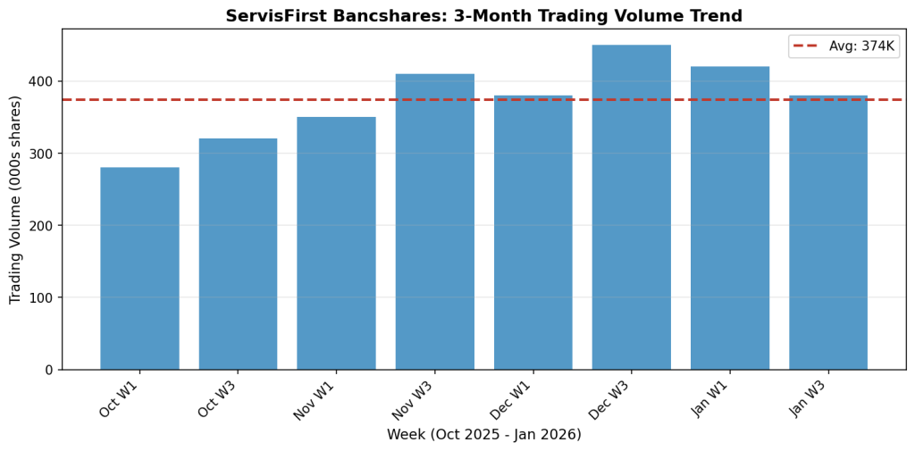 ServisFirst Bancshares is covered by multiple equity research analysts. The consensus rating is “Hold” with an average 12-month price target of $88.00. The stock has a 52-week range of $66.48 to $93.90.