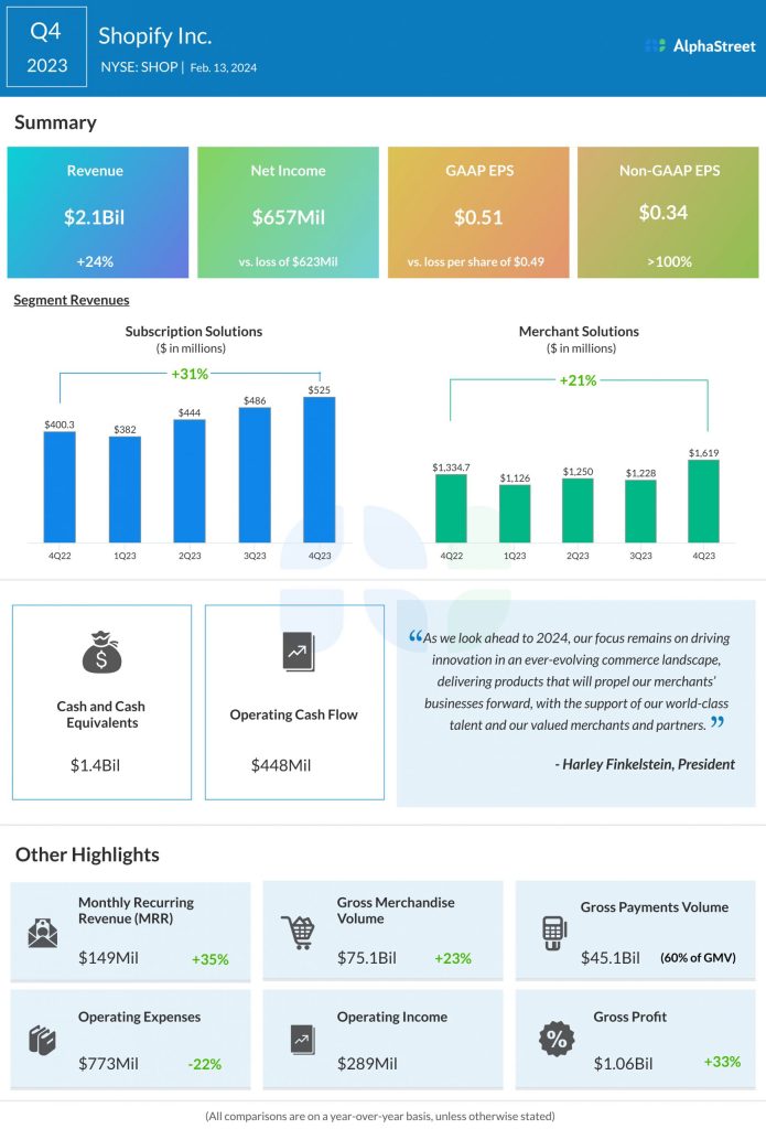 For the first quarter of 2024, Shopify expects revenue to grow at a low-twenties percentage rate on a year-over-year basis.