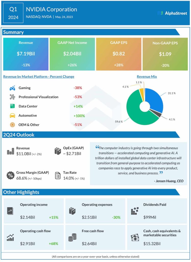 “Generative AI drove significant upside in demand for our products, creating opportunities and broad-based global growth across our markets. Let me give you some color, across our three major customer categories, cloud service providers or CSPs consumer Internet companies, and enterprises. First CSPs around the world are racing to deploy our flagship Hopper and Ampere architecture GPUs to meet the surge in interest from both enterprise and consumer AI applications for training and inference.”