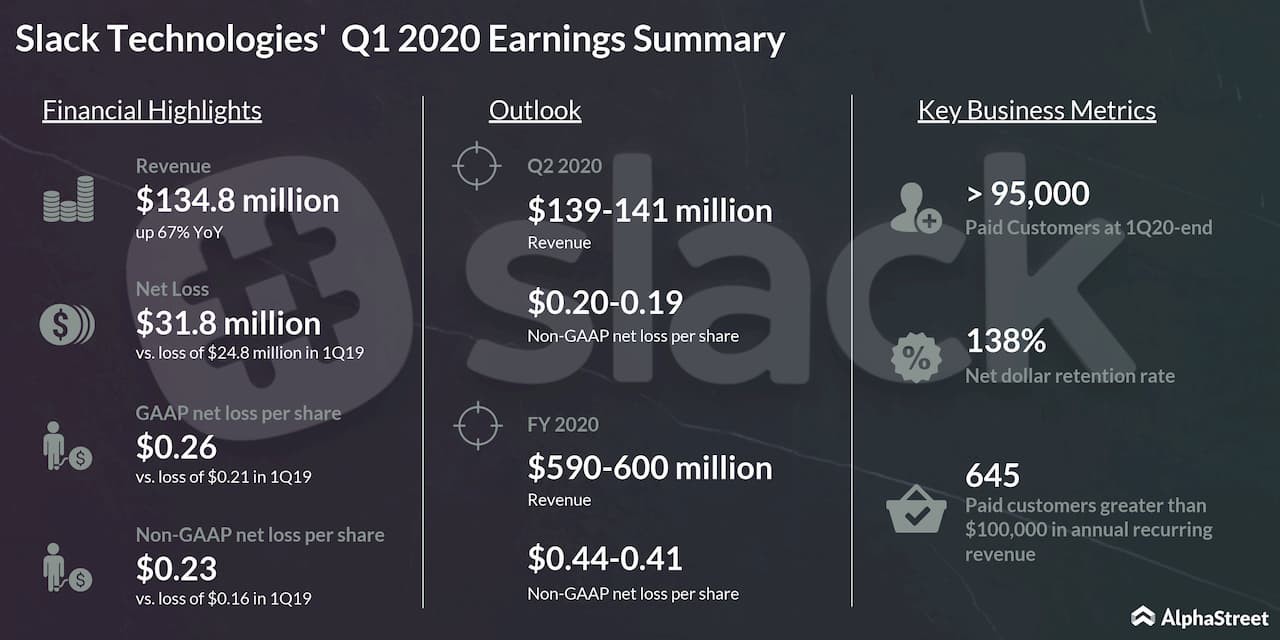 Slack Technologies Inc., which is going to list its Class A common stock directly on June 20 with a ticker symbol WORK on NYSE, reported its financial results for the first quarter ended April 30, 2019, on Monday after the market closed. The workplace collaboration platform also provided the outlook for its second quarter of 2020 ending July 31, 2019, and the fiscal year 2020 ending January 31, 2020.