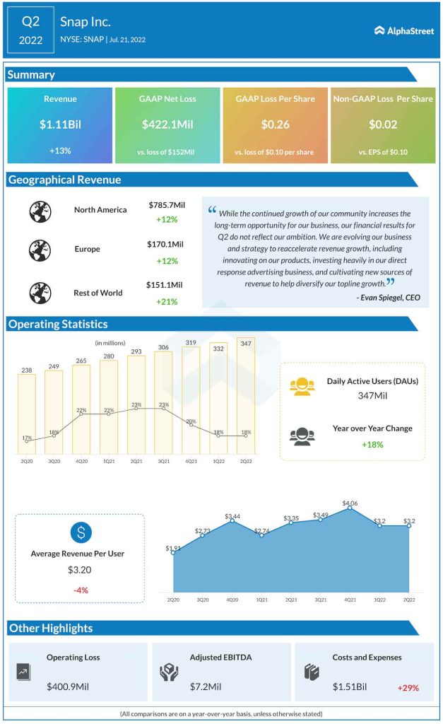 Check this space to read management/analysts’ comments on Snap’s Q2 2022 earnings
