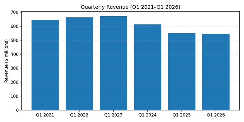 For the first quarter of fiscal year 2026, Sonos reported revenue of $545.662 million. Revenue declined modestly compared with the same period a year earlier, reflecting softer demand across certain product categories. GAAP net income for the quarter was $93.798 million, while non-GAAP net income totaled $115.504 million. Adjusted EBITDA for the quarter was reported at $132.139 million.