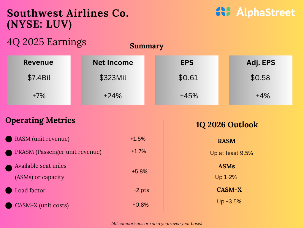 Southwest Airlines (NYSE: LUV) reported its fourth quarter 2025 earnings results.