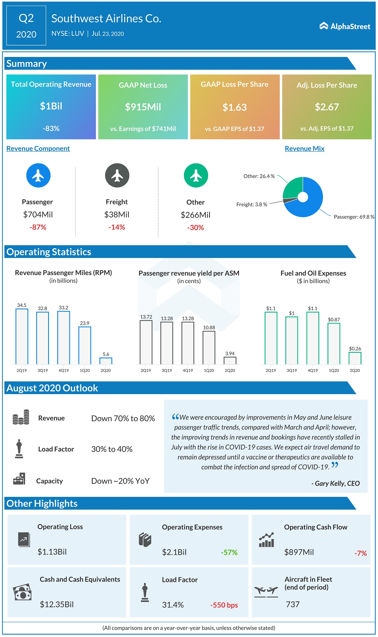 “We expect air travel demand to remain depressed until a vaccine or therapeutics are available to combat the infection and spread of COVID-19. We will adjust our flight schedule aggressively and frequently in response to this volatile demand environment,” said CEO Gary Kelly.