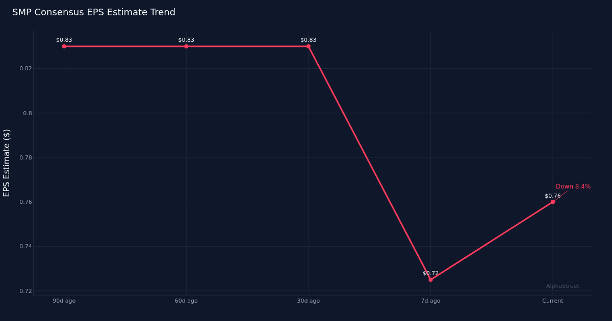 Investor focus will center on whether the company can reverse the estimate revision trend. The downward drift in EPS expectations suggests either input cost inflation, pricing pressure, or volume shortfalls are weighing on near-term profitability. Standard Motor Products has historically managed through cyclical pressures by leveraging its established distribution relationships and broad product lineup, but the current estimate trajectory indicates the Street is penciling in a softer outcome than initially anticipated. Any commentary on inventory levels at key customers, pricing actions, or raw material costs will be scrutinized for signals about the balance of the year.