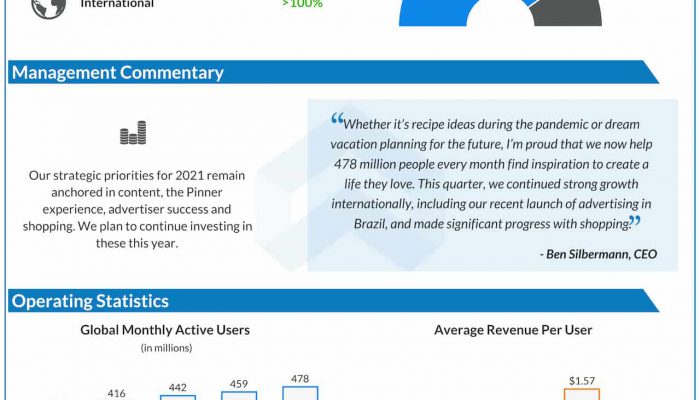 Image sharing platform Pinterest, Inc. (NYSE: PINS) reported profit for the first quarter of 2021, compared to a loss last year, aided